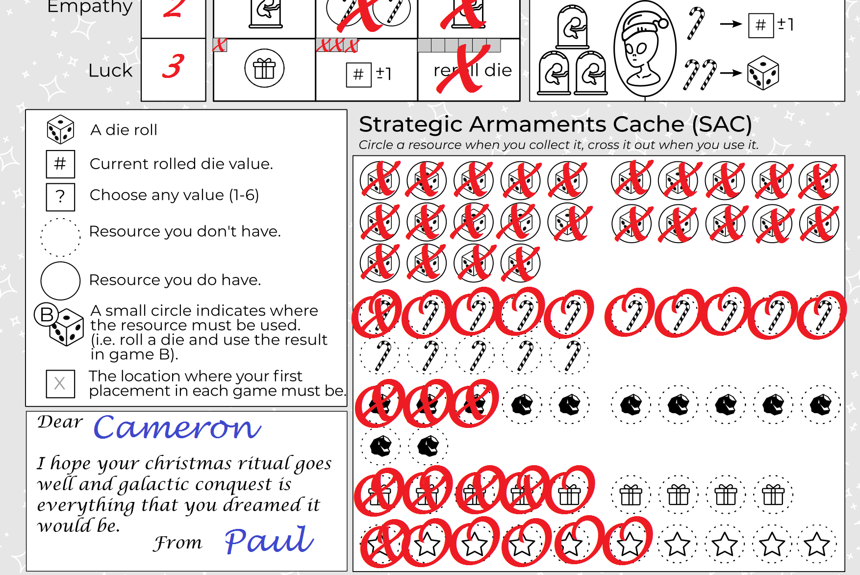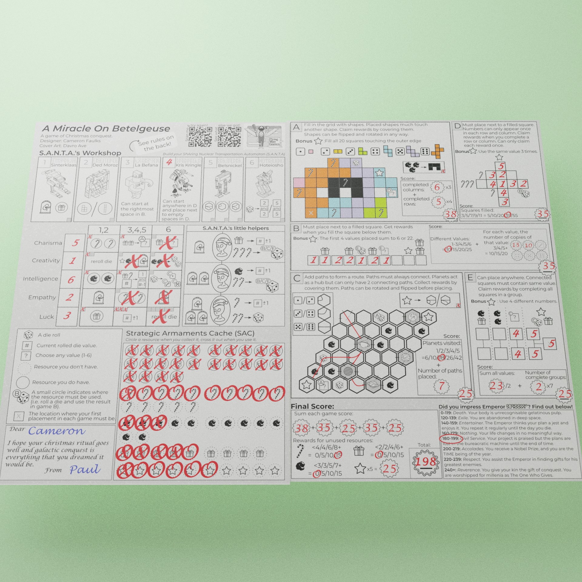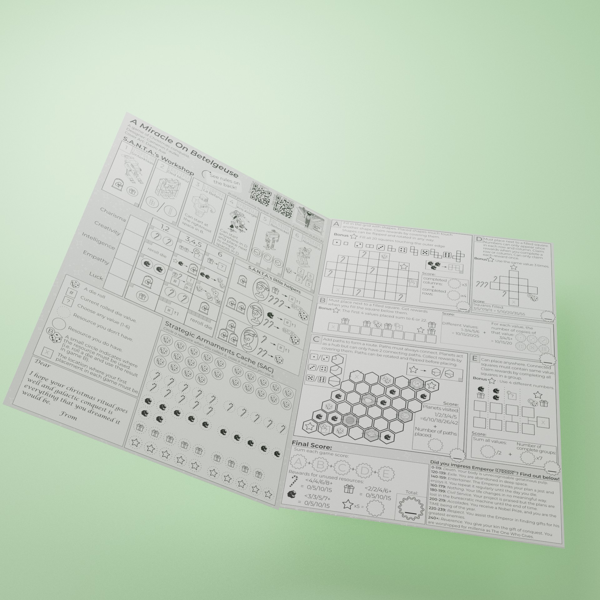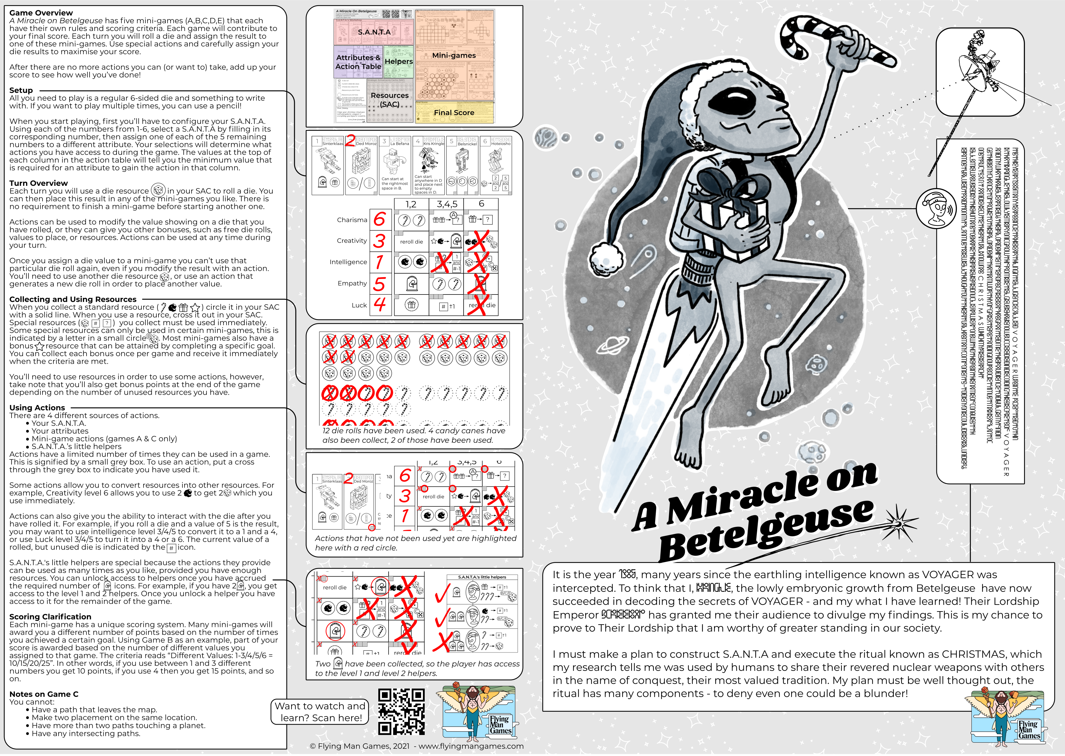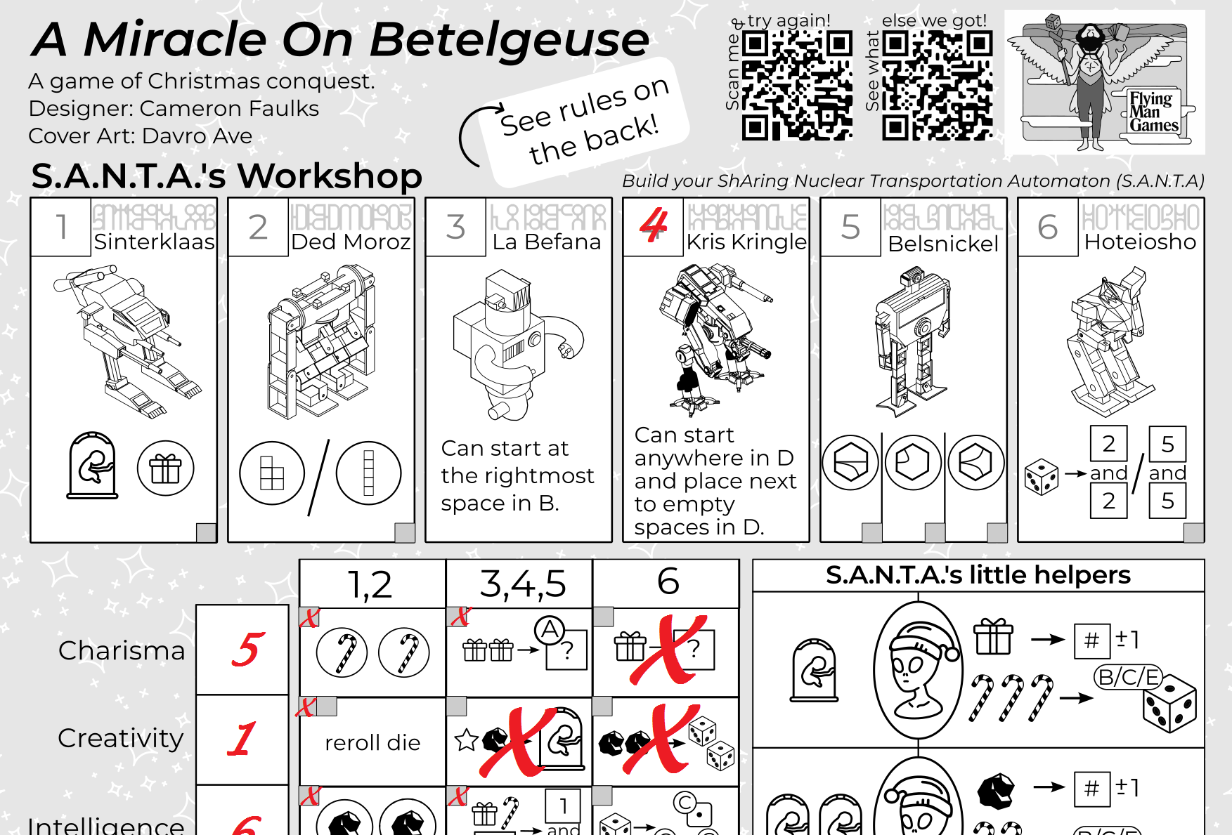Are your Christmas cards being ignored? Are they being thrown aside with wanton disregard? Look no further - A Miracle on Betelgeuse is a game that you can print out and use as a Christmas card! All your lucky recipient will need is a pen and a 6-sided die (or die app!). Works great as an e-card too!